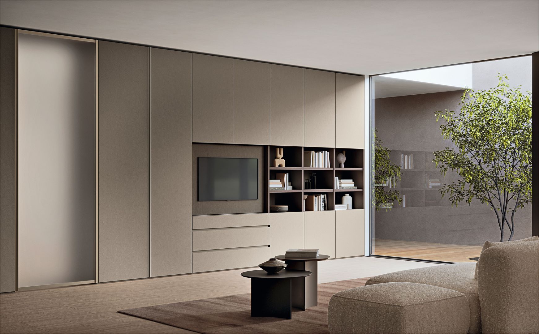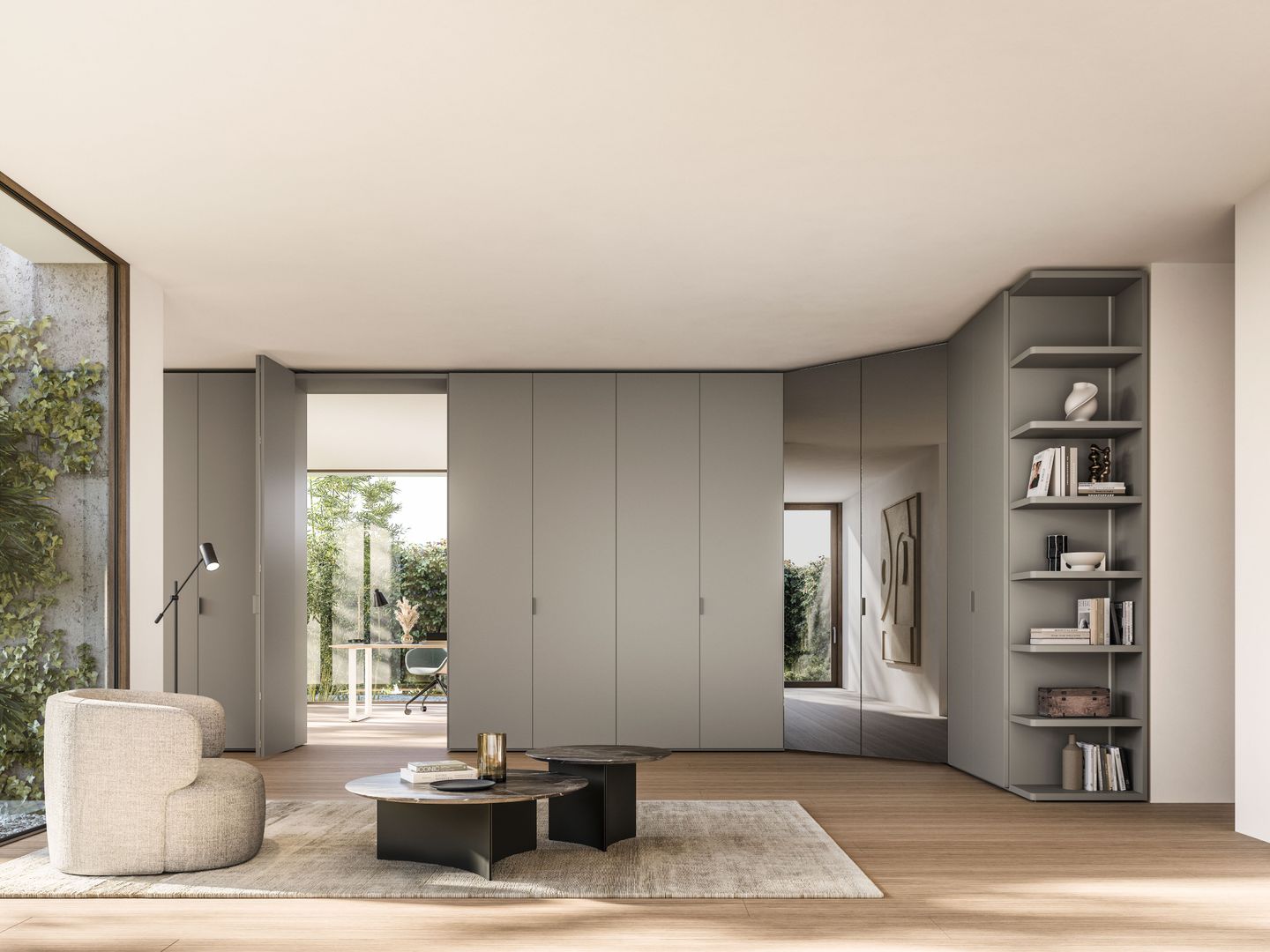 Nexta ist mehr als ein Türsystem: Es ist ein Gestaltungselement moderner Architektur. Schränke werden zu Wänden, strukturieren Räume und schaffen fließende Übergänge zwischen Wohn-, Schlaf- und Arbeitsbereichen.