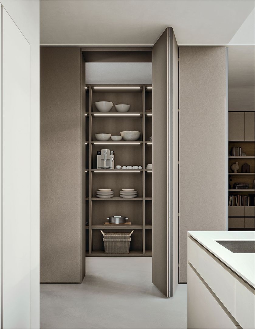 In den Ausführungen als Falt- oder Drehtür sowie in den Oberflächen Melamin, Lack, Glas und Holz bietet Nexta vielfältige Möglichkeiten für integrierte Wohnlösungen.