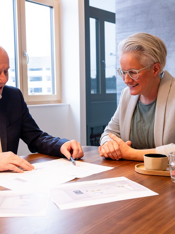 Wir begleiten Sie, bis Sie in Ihrem neuen Zuhause angekommen sind. Mit Plänen, Konzepten und Empfehlungen. Lehnen Sie sich zurück, wir hängen uns rein.