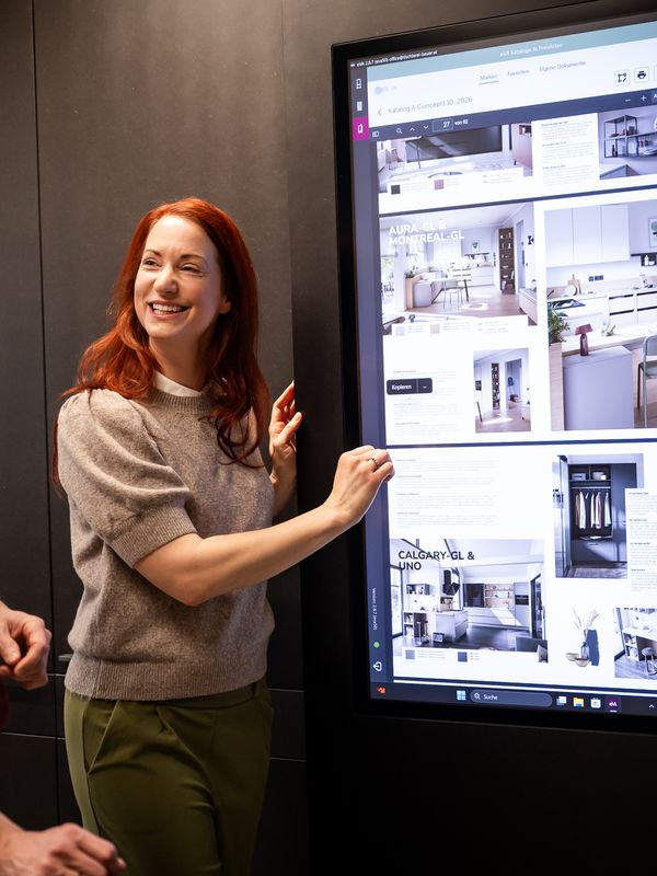 Unser Schauraum hat sich digital in Schale geworfen. Lassen Sie sich am XL-Touchdisplay inspirieren und machen Sie den Style-Check. Wann immer die Muse Sie küsst, schauen Sie vorbei.