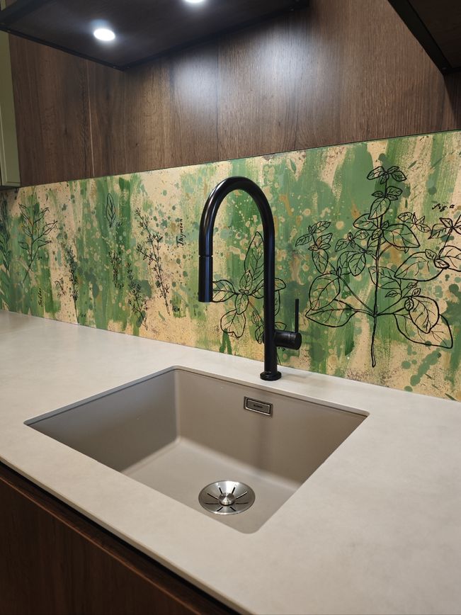 Die Keramikarbeitsplatte in Pietra setzt einen eleganten Kontrast und fügt sich harmonisch in das Gesamtkonzept ein. Auch technisch überzeugt die Küche: Das AEG-Induktionskochfeld mit integriertem Abzug sowie der ergonomisch erhöhte, vollintegrierte Geschirrspüler bieten höchsten Komfort und machen die Küche zu einem funktionalen wie stilvollen Mittelpunkt des Wohnraums.