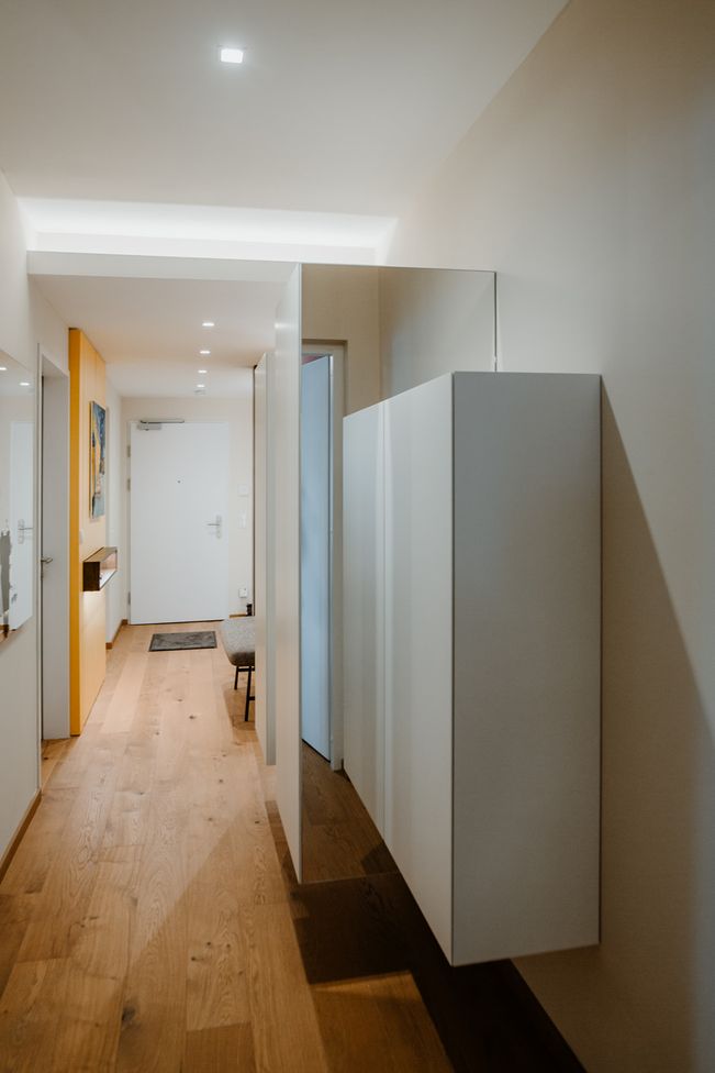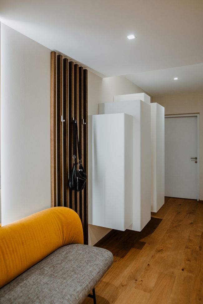 Das stilvolle, funktionale Vorzimmer überzeugt mit klaren Linien und warmen Materialien.
