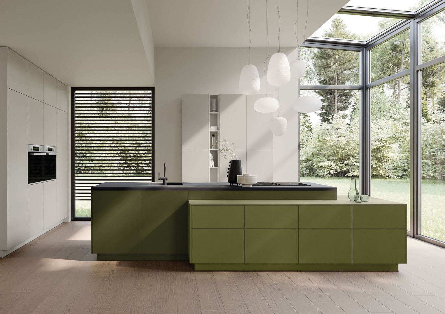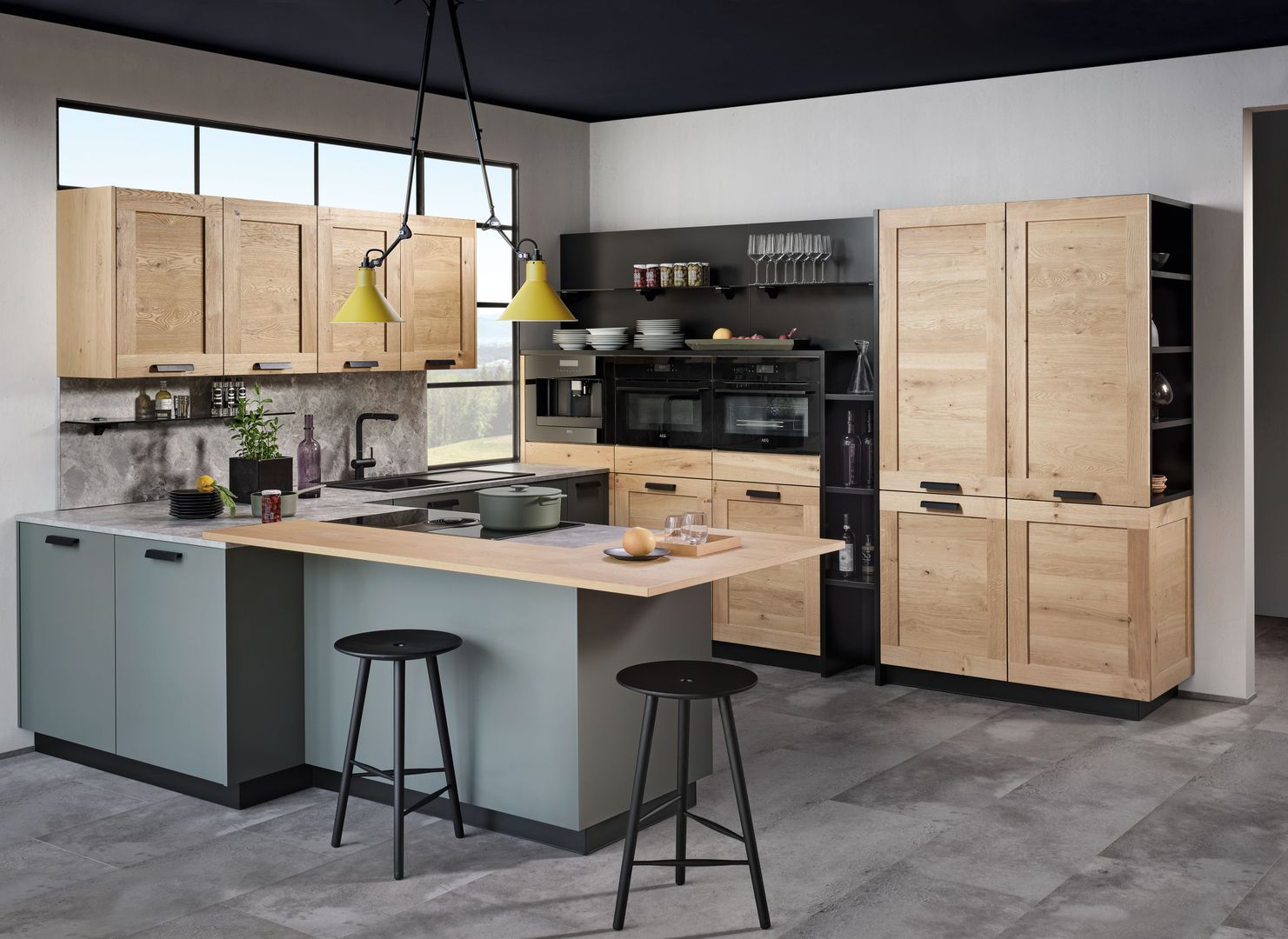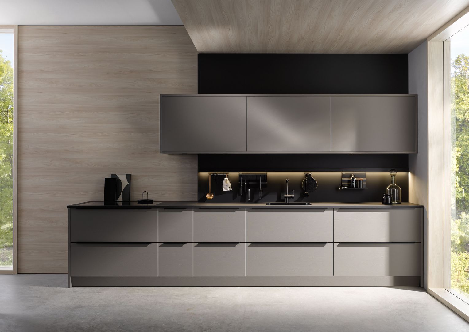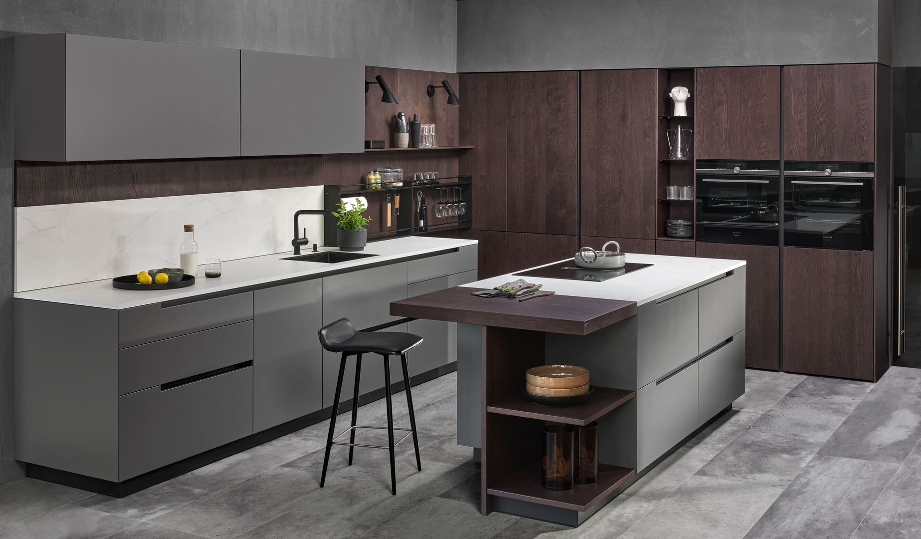Wie sieht die Küche in den 2020-er Jahren aus? Eines ist klar: Sie ist offen für Neues. Offenes Wohnen ist so aktuell wie nie zuvor, und die einzelnen Lebensbereiche verschwimmen. In der Küche wird gearbeitet, gustiert und gekostet, auch gegessen, gechillt und verweilt. Das nicht mehr so wie vor einigen Jahren meist in klinischem Weiß, sondern in eher dunkleren Tönen. Dabei reicht der Bogen von Anthrazit über Mitternachtsblau und Tannengrün bis zu dunklen Hölzern, in die sich immer wieder ein neuer, leichter Rosé Ton mischt und für frischen Wind sorgt. Diese Farbwelt ist oft matt, in Anti-Fingerprint Optik, meist grifflos und mit vielen praktischen Details gespickt. Es gibt unzählige Varianten, um typische Küchenhelfer verschwinden zu lassen, die dann mit einem Handgriff sofort parat sind. Die Zeiten, in denen die Küche offensichtlich mit ihren technischen Hilfsmitteln geprahlt hat, sind Schnee von gestern. Alle Linien sind klar und puristisch. Die Küche beeindruckt als stylishes Designmöbel und Blickfang zugleich.