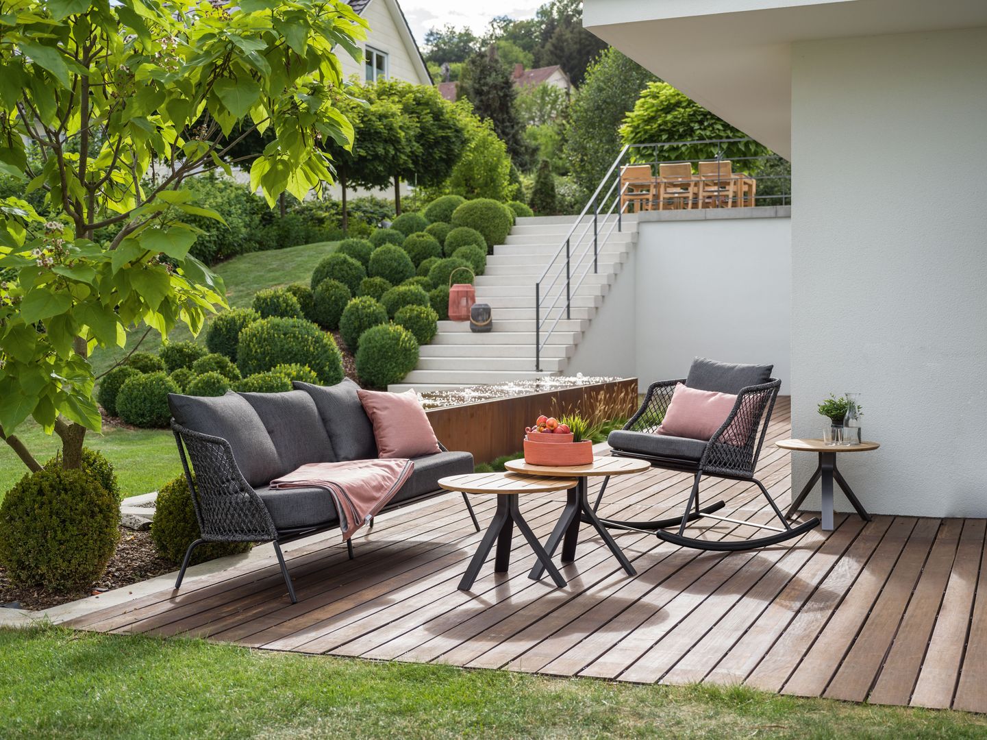 Der aktuelle Outdoor-Wohnstil spielt sich rund um natürliche Materialien ab. Echtheit, Nachhaltigkeit und Natürlichkeit stehen deshalb auch im Mittelunkt der Outdoor-Wohnkollektionen. Dazu passendes erdiges Beige, Braun und frisches Grün unterstützen diesen authentischen Stil. Doch nicht nur im Möbelsegment sind natürliche Materialien stark im Kommen: Ob Pflanztöpfe im rauen Natursteindesign, Teppiche in Jute-Optik oder Sonnenschirmständer in Holzoptik – die Natur findet sich auch mehr und mehr in Outdoor-Accessoires wieder.