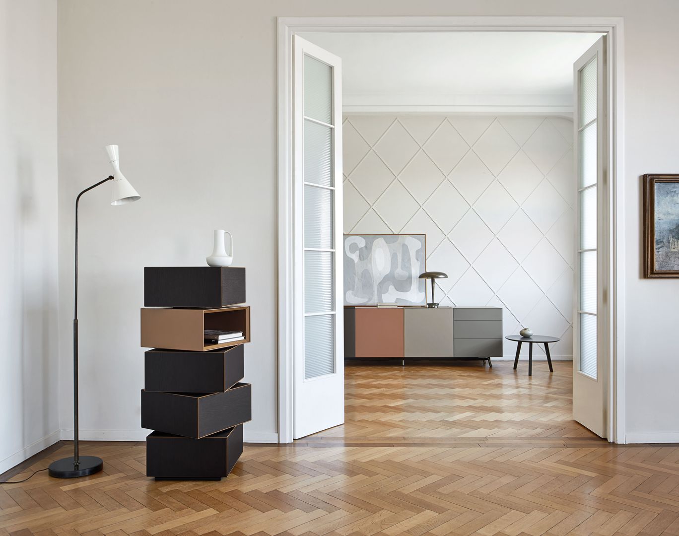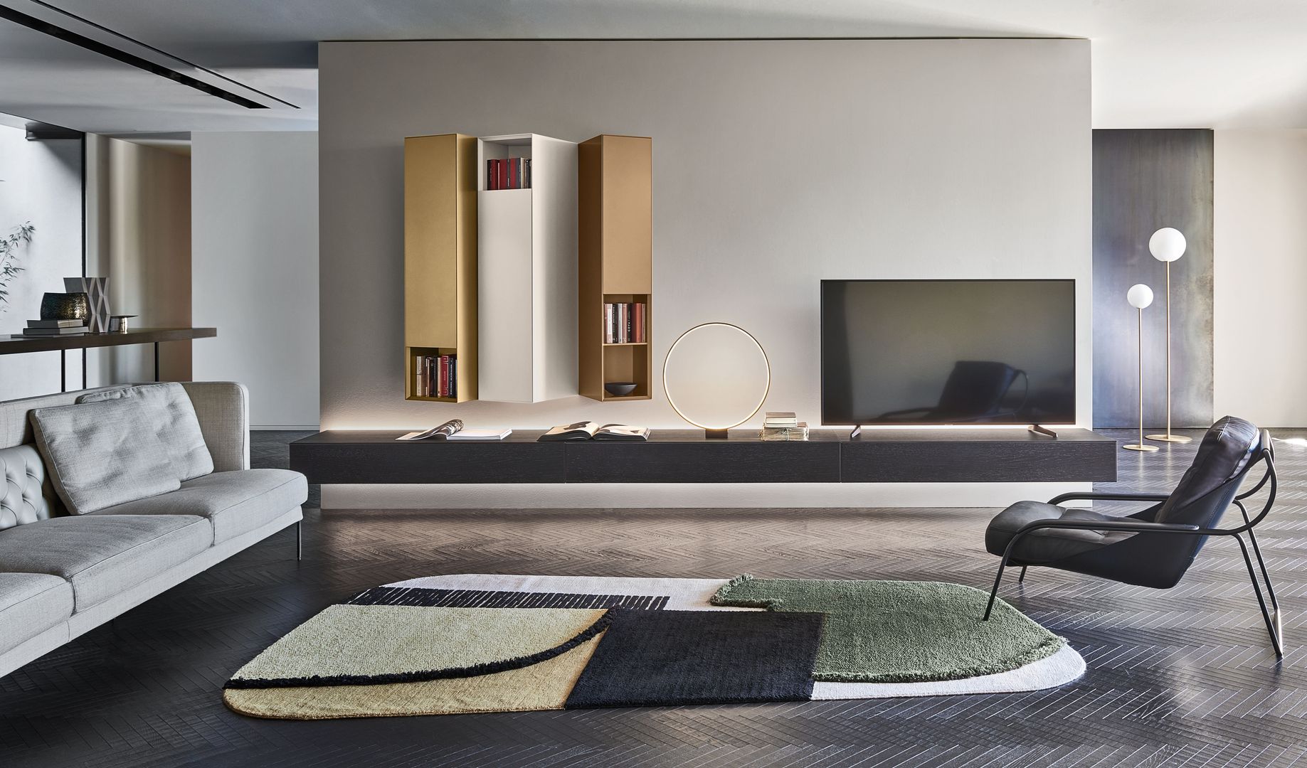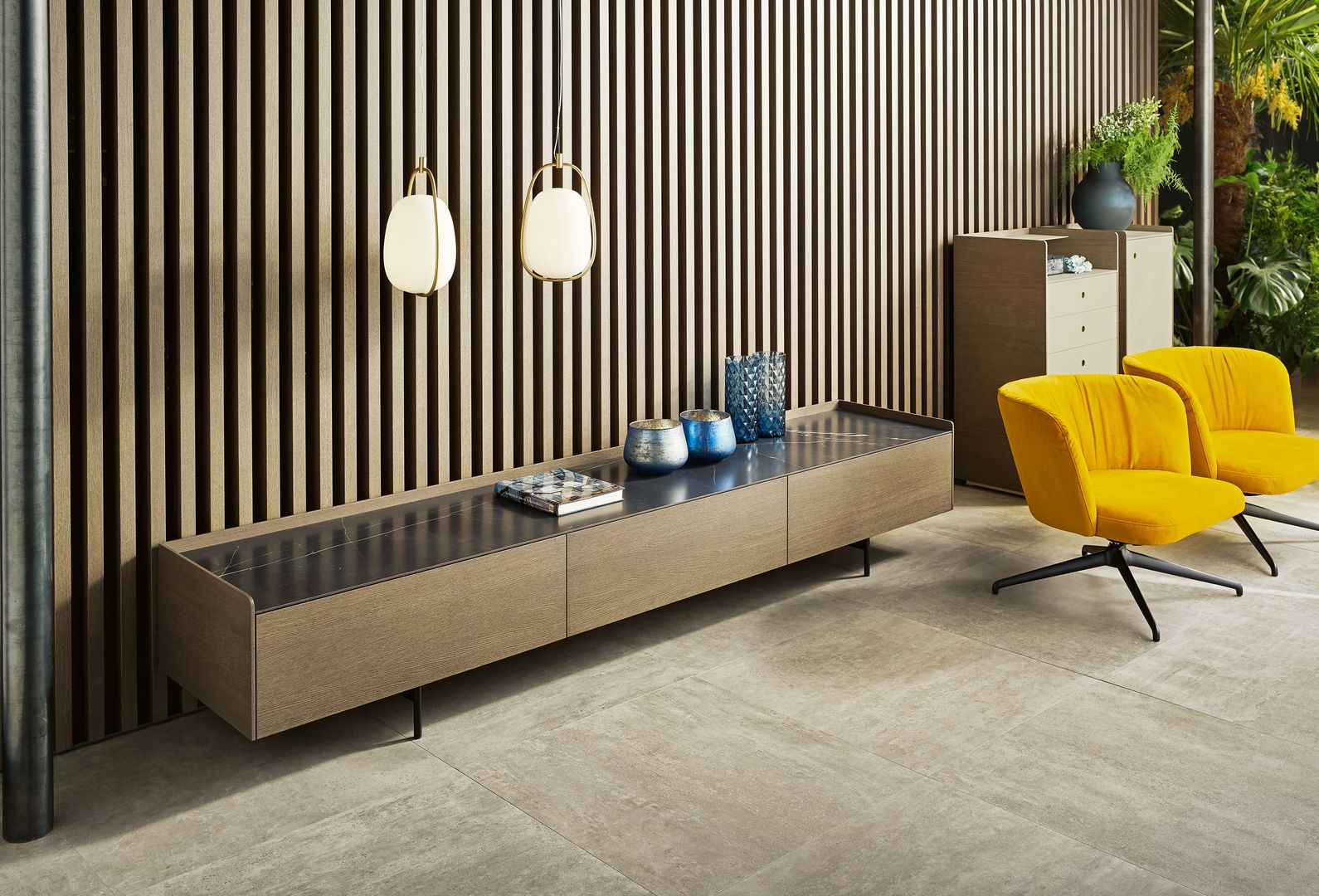 Wohnlandschaften hier, hochbeinige und grazile Sofas als Blickfang da. Auch das Auge wohnt mit. Deshalb schaffen zwischendurch oft schwarze, aber auch glänzend silberne oder farbig lackierte Metallgestelle farbige und designtechnische Kontraste – und wirken dadurch platzsparend und dennoch sehr elegant.